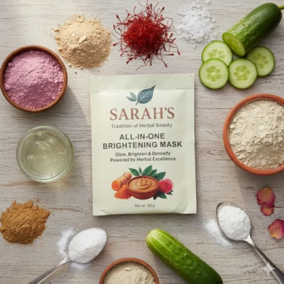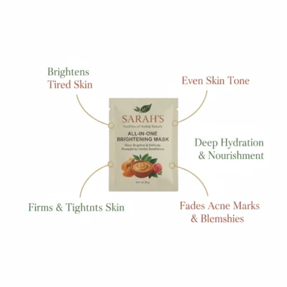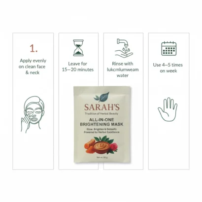The All-in-One Whitening Mask is a complete herbal skincare solution designed to revive dull skin, improve uneven tone, and deeply nourish. Enriched with traditional herbal ingredients and Vitamin C, this mask helps restore your skin’s natural glow while keeping it hydrated and refreshed.